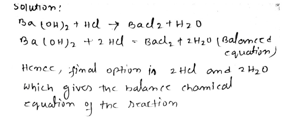 . 2 HCl aq BaOH2 aq BaCl2 aq 2 H20 1 We can interpret this to mean. The balanced equation because that this reaction is. 2HCl aq Ba OH2 aq BaCl2 aq 2H2 0 1 If 4 moles of barium hydroxide react The.